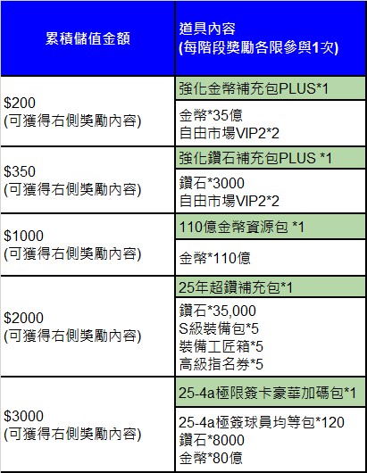 ※本活動僅限於官網WEB儲值「累積金額」獲得,使用App Store或Google電子錢包於遊戲內消費不在本活動獎勵範圍