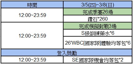 ② 3/5-3/10 超級中華隊強化爆擊活動
