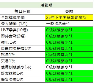 Step1: 期間完成每日任務領取: [25年下半季挑戰硬幣]