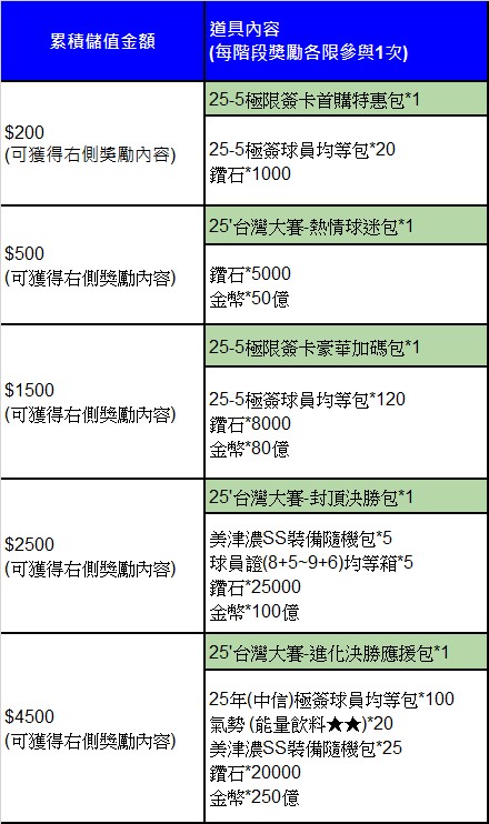 ※本活動僅限於官網WEB儲值「累積金額」獲得,使用App Store或Google電子錢包於遊戲內消費不在本活動獎勵範圍