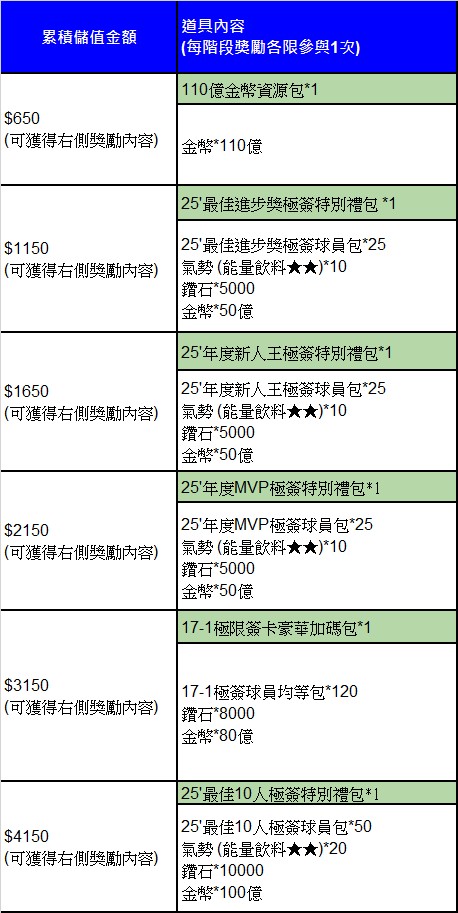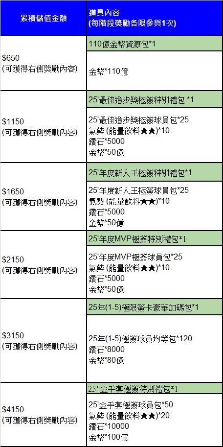 ※本活動僅限於官網WEB儲值「累積金額」獲得,使用App Store或Google電子錢包於遊戲內消費不在本活動獎勵範圍