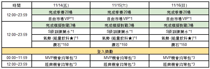 活動內容:於活動時間內,選手界限突破率提升 1.5 倍!