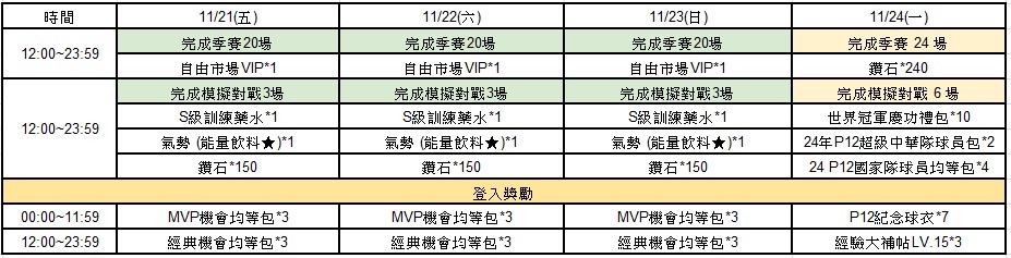 ● 11/21-11/24 世界冠軍1周年-棒球作業