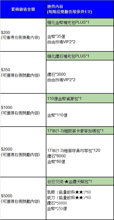 ※本活動僅限於官網WEB儲值「累積金額」獲得,使用App Store或Google電子錢包於遊戲內消費不在本活動獎勵範圍