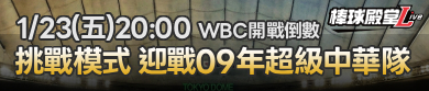③ 1/23(五)20:00,WBC開戰倒數-特別挑戰模式(第1波)
