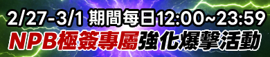 ② 2/27-3/1 NPB專屬強化爆擊活動