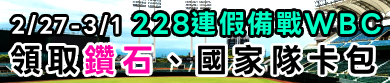 ① 2/25-3/12 WBC 特別主題活動 (Team Taiwan 一起為台灣應援!)