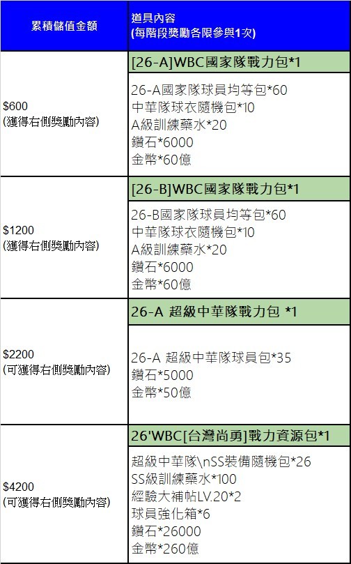購買規則:活動指定期間在官網WEB儲值購買鑽石,累積滿額即可額外獲得獎勵